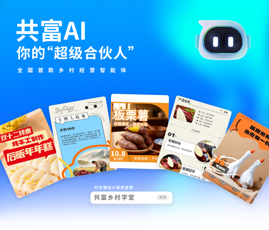产业经营是乡村振兴、农民增收的重要途径。然而,丛志强教授在乡村实践的过程中,发现策划、设计、直播、电商等,对于乡村创业者,尤其村民创业者是个大难题,高昂的外包费用和复杂的操作流程,让很多乡村创业者望而却步。基于此,丛志强教授萌生了借助人工智能助力乡村产业运营的想法。恰逢腾讯SSV(可持续社会价值事业部)也在探索智能体赋能乡村振兴的新路径,双方一拍即合,“共富AI”应运而生。