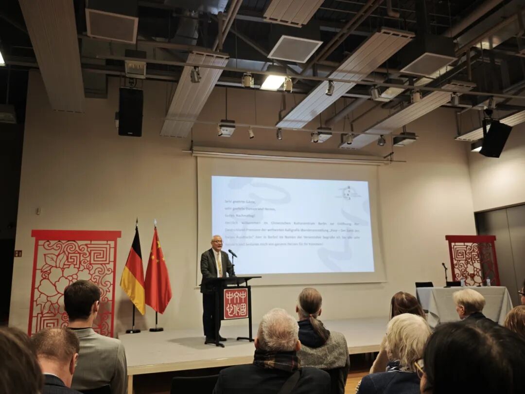 周斌教授作为本次展览策展人,在展览开幕式上致辞表示,书法是一种融汇东方哲学、美学精神与生命体验的艺术形式,“写意精神”强调源于心灵的自由表达,是情感、思想与自然韵律的高度统一。柏林特展是该巡展在欧洲的重要一站,希望通过书法这一独特艺术语言,为德国及欧洲公众打开理解中国文化精神世界的窗口,积极促进中外文化交流与文明对话。